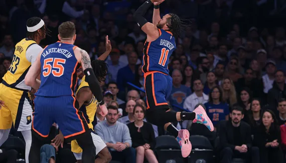 Accompagné de Miles McBride pour débuter la rencontre, Jalen Brunson a grandement profité de la domination au rebond de ses coéquipiers. Pourquoi ? Parce qu'un ballon récupéré et bien ressorti, c'est l'assurance de pouvoir donner du rythme et de peser sur la défense. Cette nuit, Jalen Brunson n'a cessé de mettre à mal le repli des Pacers. A la pause, il en était déjà à 28 points. Un record de franchise…
