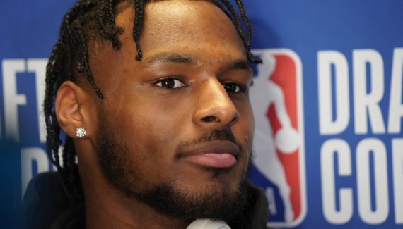 Sa parole est rare, et c’est même la première fois qu’il s’exprime aussi longuement devant la presse. C’est même la première fois qu’il s’exprime tout court cette saison, puisque ses “conseillers” lui avaient demandé de ne pas accorder d’interview après son retour sur les terrains. Invité au Draft Combine, Bronny James a répondu à des questions sur ses ambitions, son père évidemment, mais aussi ses modèles. Et d’abord, il prévient que, contrairement à son papa, sa priorité est d’aller en NBA, et non de jouer avec lui.