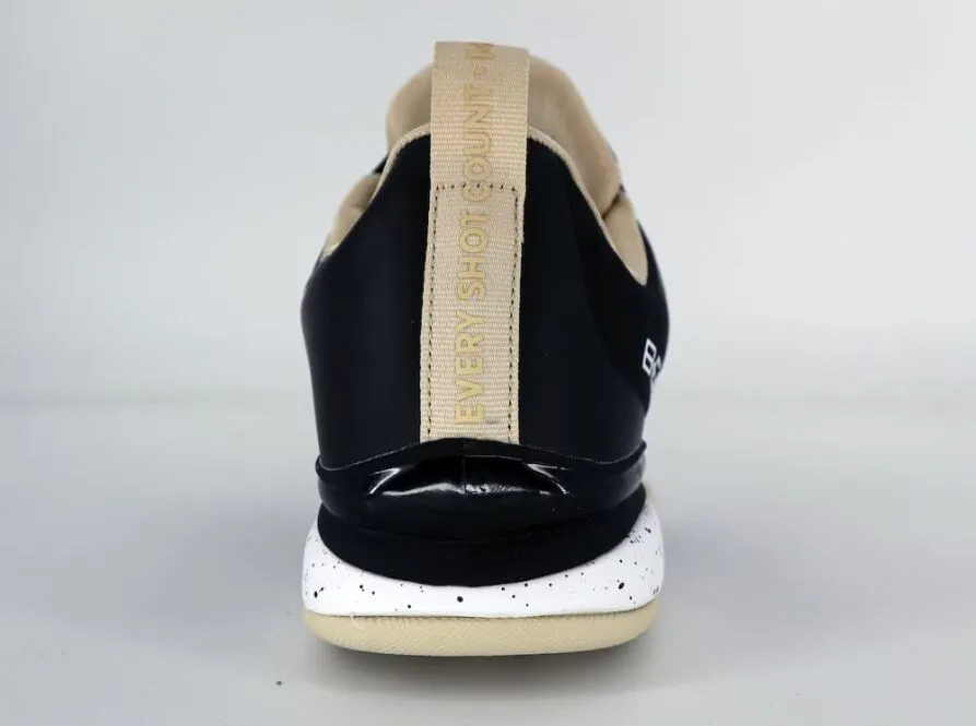 On notera enfin la présence d'un ballon de basket sous la semelle, où le slogan “Every Shot Count” parcourant la languette et la tirette parmi les ultimes détails. Seuls deux coloris sont pour l'instant disponibles, en noir et blanc pour l'un, vert et blanc pour l'autre.