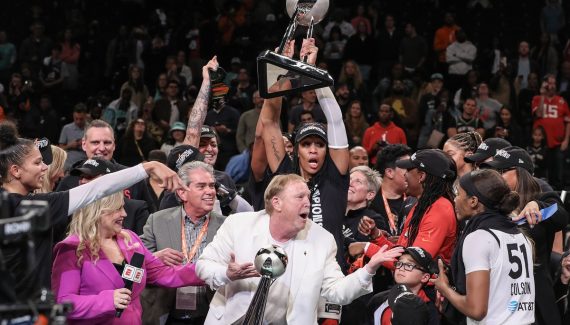 Le vestiaire est médusé par l’annonce. Quelques secondes avant de se retrouver au milieu des joueuses des Aces, Steve Hill, CEO de Las Vegas Convention & Visitors Autority, avait prévenu : « Les Aces ont connu un parcours historique, double championnes du monde. On est ici pour faire quelque chose d’historique avec elles aussi. »