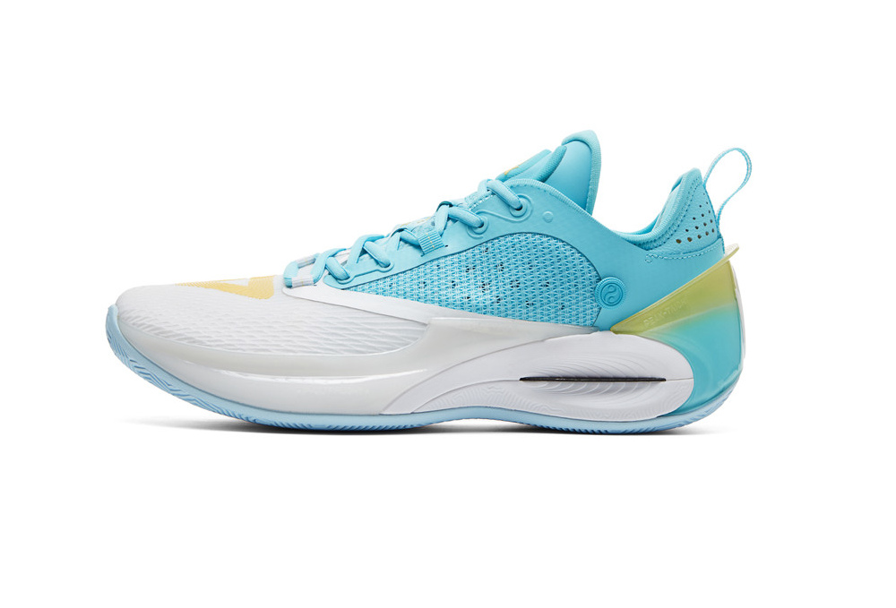 Sur cette première AW2, on note aussi les finitions en forme de clin d’oeil au joueur, comme son logo au niveau du talon, sa signature sur l’étiquette recouvrant les lacets, ou encore son numéro 22 sur la languette. Pour ce qui est des coloris, il y en a pour tous les goûts avec du orange, du blanc, ou encore du noir… Le modèle bleu, ci-dessous, est complétée par plusieurs teintes de bleu ciel, proche du turquoise sur la partie supérieure de la tige, et plus neutre pour faire ressortir la semelle extérieure, et également des notes de doré, comme sur le logo de la marque Peak ou les différentes finitions précédemment citées.