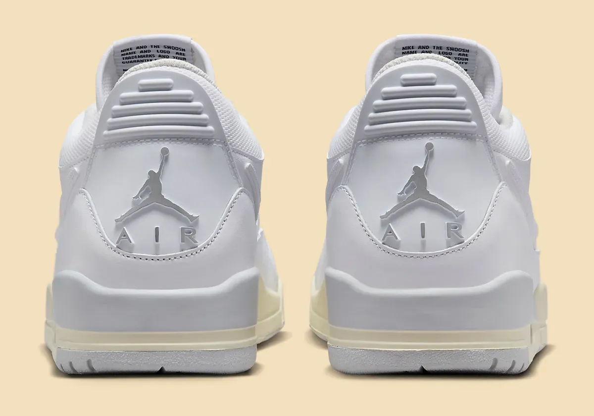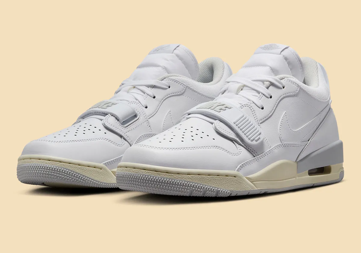 Après la Jordan Legacy 312 « Elephant Swoosh », dévoilée il y a deux mois, c'est au tour du coloris « Coconut Milk » d'être mis en avant. Le modèle fait ici dans le classique avec une tige principalement blanche assortie d'une touche « Coconut Milk » sur la semelle intermédiaire d'un blanc nacré. L'ensemble repose sur une semelle extérieure grise. Le logo « Jumpman » sur le talon, le “Nike” sur le scratch, ou les logos sur la languette, ressortent pour leur part en gris.