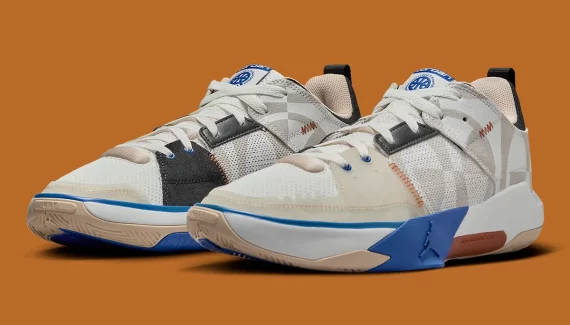 Cette année, le coup d’envoi de la campagne de promotion du Quai 54 2024 a été lancé avec la sortie de ces images officielles de la Jordan One Take 5, deuxième ligne signature de Russell Westbrook, aux couleurs de la prochaine édition du Quai. La tige apparaît en blanc et beige avec le logo du tournoi bien visible sur l’empeigne, et qu’on retrouve également sur la languette, en bleu sur fond blanc.