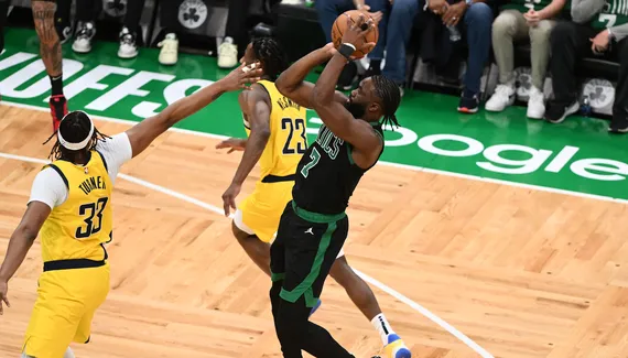 “Sang froid, patience et discipline”. Voilà comment Joe Mazzulla a résumé la performance de Jaylen Brown dans cette deuxième manche, remportée 126-110 par les Celtics. Héros du Game 1 avec son incroyable panier à 3-points pour arracher la prolongation, l'arrière/ailier avait décidé cette fois de frapper fort d'entrée.
