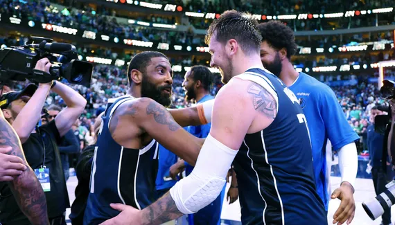 Après avoir été le Lieutenant de LeBron James pendant quatre ans, Kyrie Irving est aujourd'hui celui de Luka Doncic. Auteur de 20 points dans le Game 2, avec un beau 4 sur 7 à 3-points, le meneur All-Star a joué un rôle essentiel dans la victoire des Mavericks. Notamment avec ce 3-points dans le corner pour ramener Dallas à deux unités à 65 secondes de la fin, sur une superbe passe de son compère.