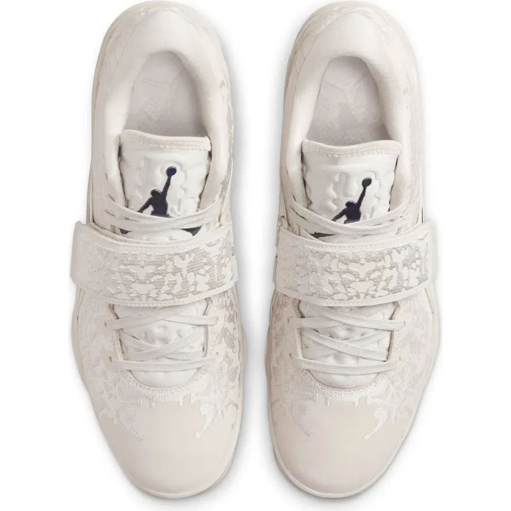 Cette dernière a ainsi été dévoilée sous un coloris « Orchid », qu'on retrouve aujourd'hui en version “SE” en France. Le modèle arbore des tons en blanc et rose pâle, recouvert de broderies sur l’ensemble de la chaussure, et donc la sangle. La même couleur recouvre la semelle, seul le Jumpman ressort en noir sur la languette et le talon.