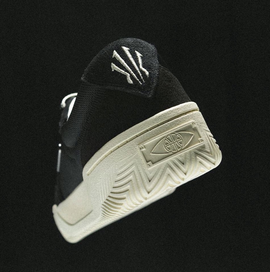 Le duo a cette fois opté pour un modèle « lifestyle » assez classique, avec quelques clins d’œil à Kyrie Irving, comme son logo apparaissant sur le talon, son numéro 11, ou les signes de la tribu Sioux appelée « Standing Rock », en hommage à ses racines indiennes provenant de sa mère, sur une tige métallique présente sur l’empeigne, avec son numéro 11.