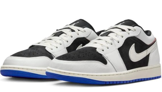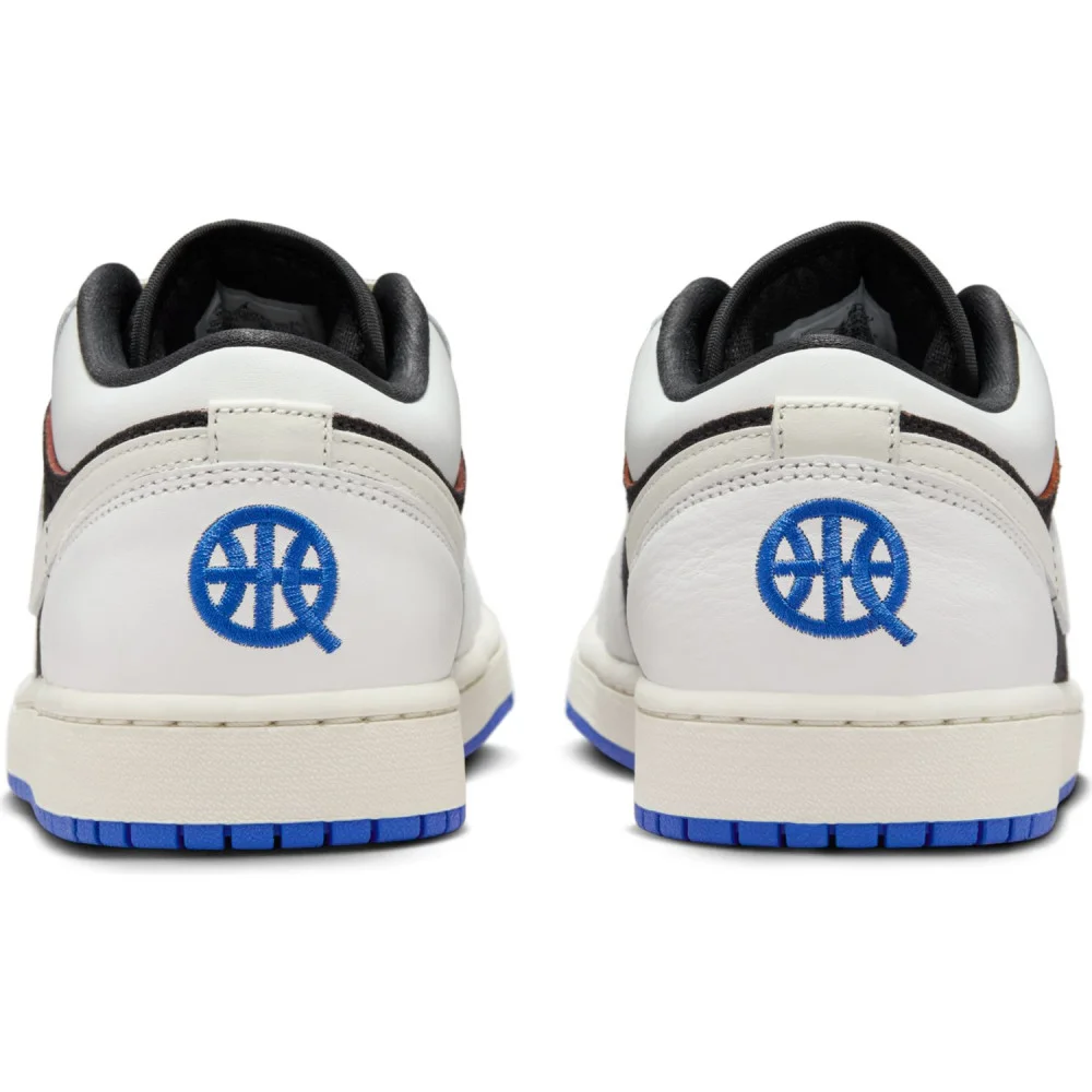 Côtés chaussures, après la Jordan One Take 5 mise en vente en début de semaine, l’heure est venue de présenter la Air Jordan 1 Low « Quai 54 ». Fidèle à l’esprit de la collection cette année, la paire est plutôt sobre avec une tige en noir et blanc, une semelle intermédiaire en blanc nacré et une semelle extérieure bleue. Le « Jumpman » ressort en blanc sur la languette noire, tandis que le logo du Quai 54 apparaît en bleu foncé sur fond blanc.
