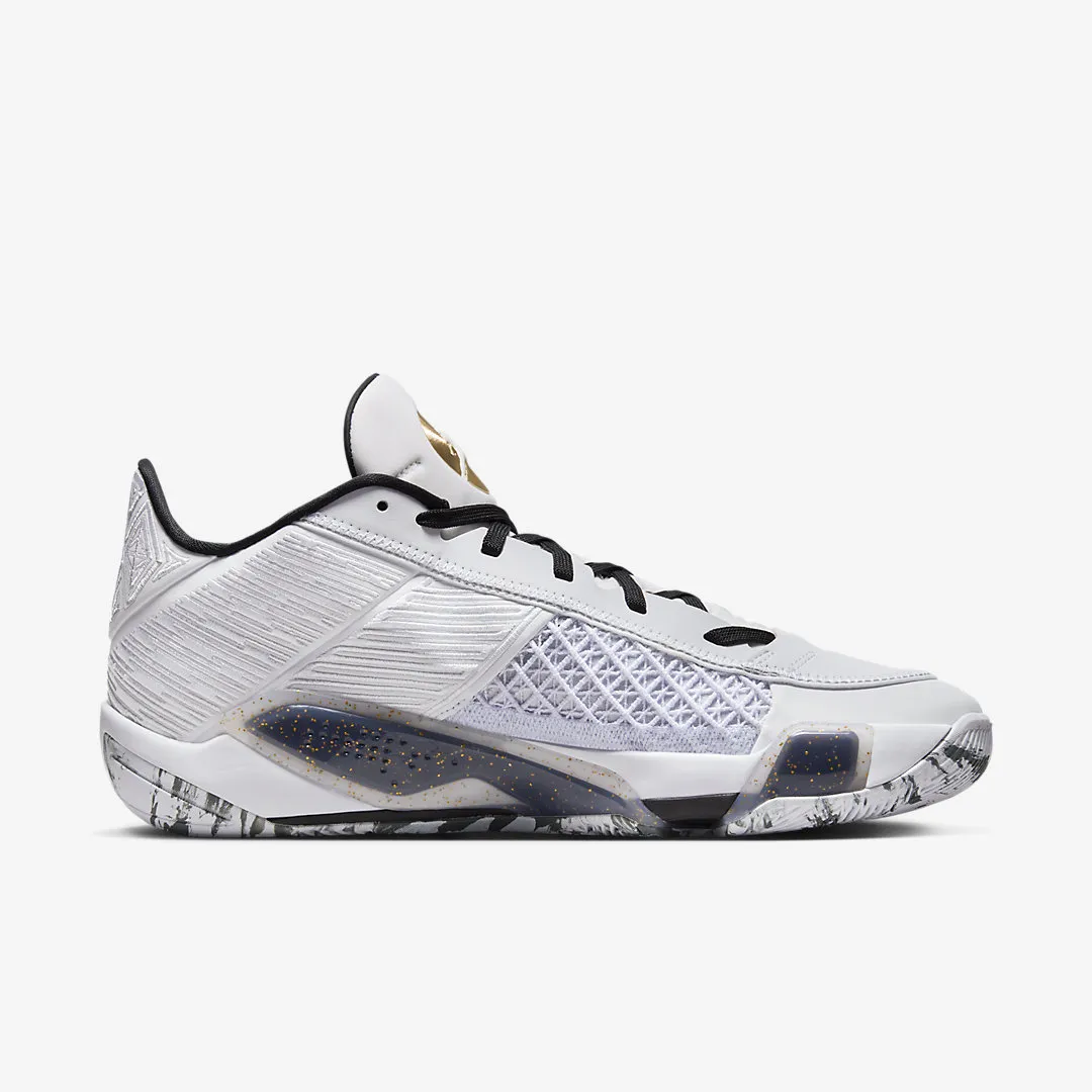 La Air Jordan 38 Low « White-Metallic Gold » est disponible depuis aujourd'hui aux Etats-Unis, pour le lancement des NBA Finals, au prix de 175 dollars.
