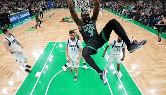 Les deux équipes se livrent alors à un chassé-croisé jusqu’à la mi-temps. Jrue Holiday (26 points, 11 rebonds) se régale en ligne de fond et au “dunker spot” alors que Doncic trouve trois fois Derrick Jones Jr. pour garder Dallas à hauteur de Boston. Il faut la huitième passe décisive de Jayson Tatum, qui décale Holiday dans le corner, pour voir les Celtics prendre trois points d’avance (54-51).
