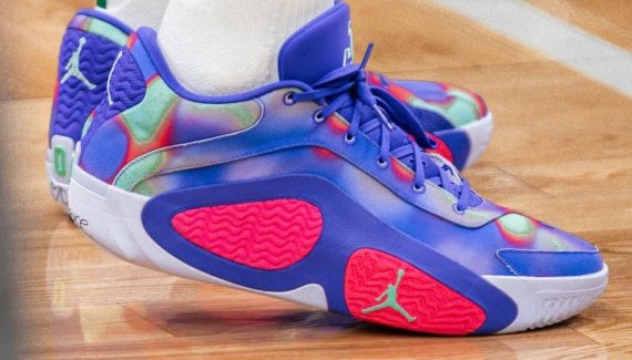 Pour le côté étincelant, c’est donc sur les pieds de Jayson Tatum qu’il a fallu se pencher, avec un nouveau coloris de la Tatum 2 mis en lumière à l’occasion du Game 1. Baptisé « Next Stop Dongdan », celui-ci rend hommage au tournoi streetball organisé chaque été dans le quartier de Pékin appelé Dongdan.