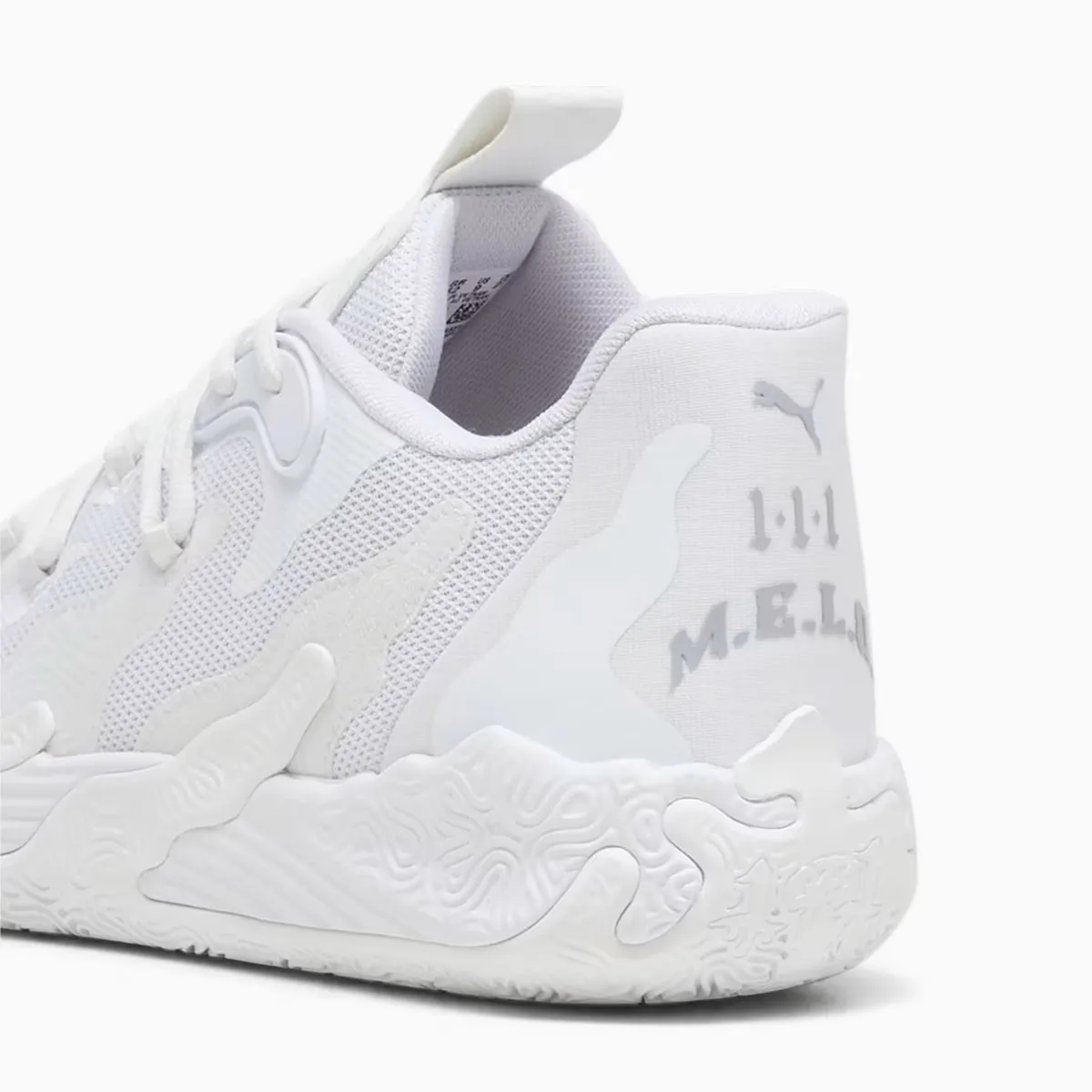Ce nouveau coloris de la troisième chaussure signature de LaMelo Ball allie une tige aux différentes teintes de blanc à une semelle également blanche. On note quelques finitions en gris, sur la languette où figurent les inscriptions « Rare » et « NO.1 » ou sur le « M.E.L.O. » présent sur le talon.