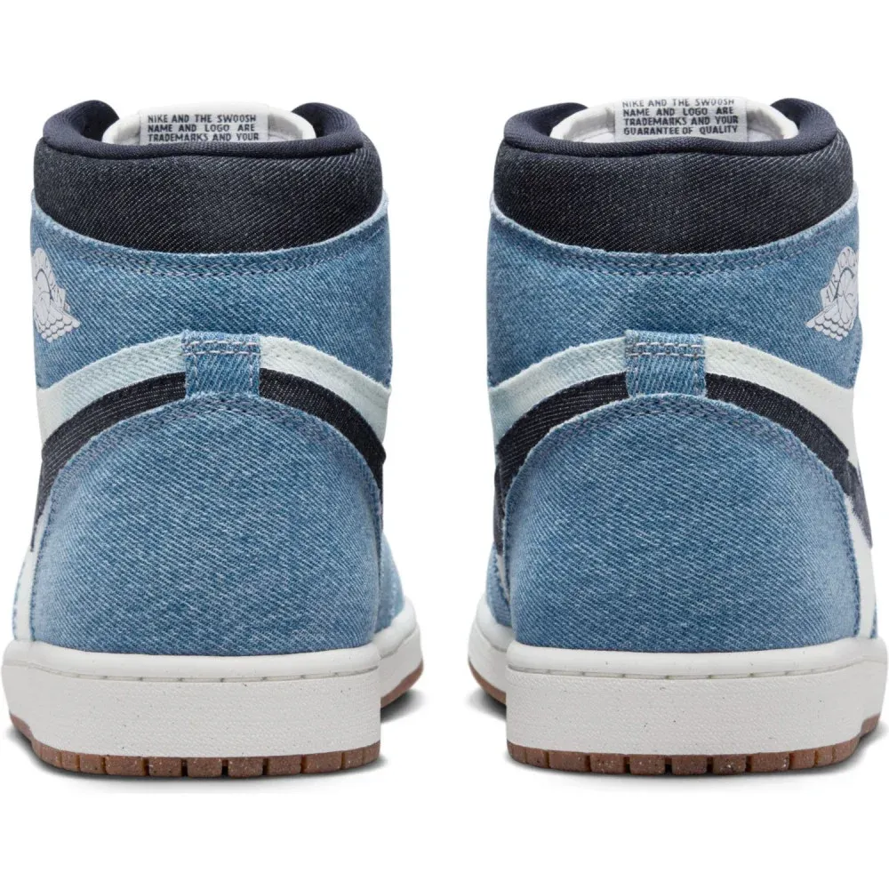 Côté sneakers, c'est la Air Jordan 1 « High Denim Obsidian » qui a été mise à l'honneur avec une touche « Denim » pour compléter une tige blanche assortie de finitions en bleu foncé, au niveau du col et du « Swoosh », l'ensemble reposant sur une semelle blanche et marron. Basket4Ballers a marqué le coup en mettant la paire en vente à minuit, au prix de 190 euros.