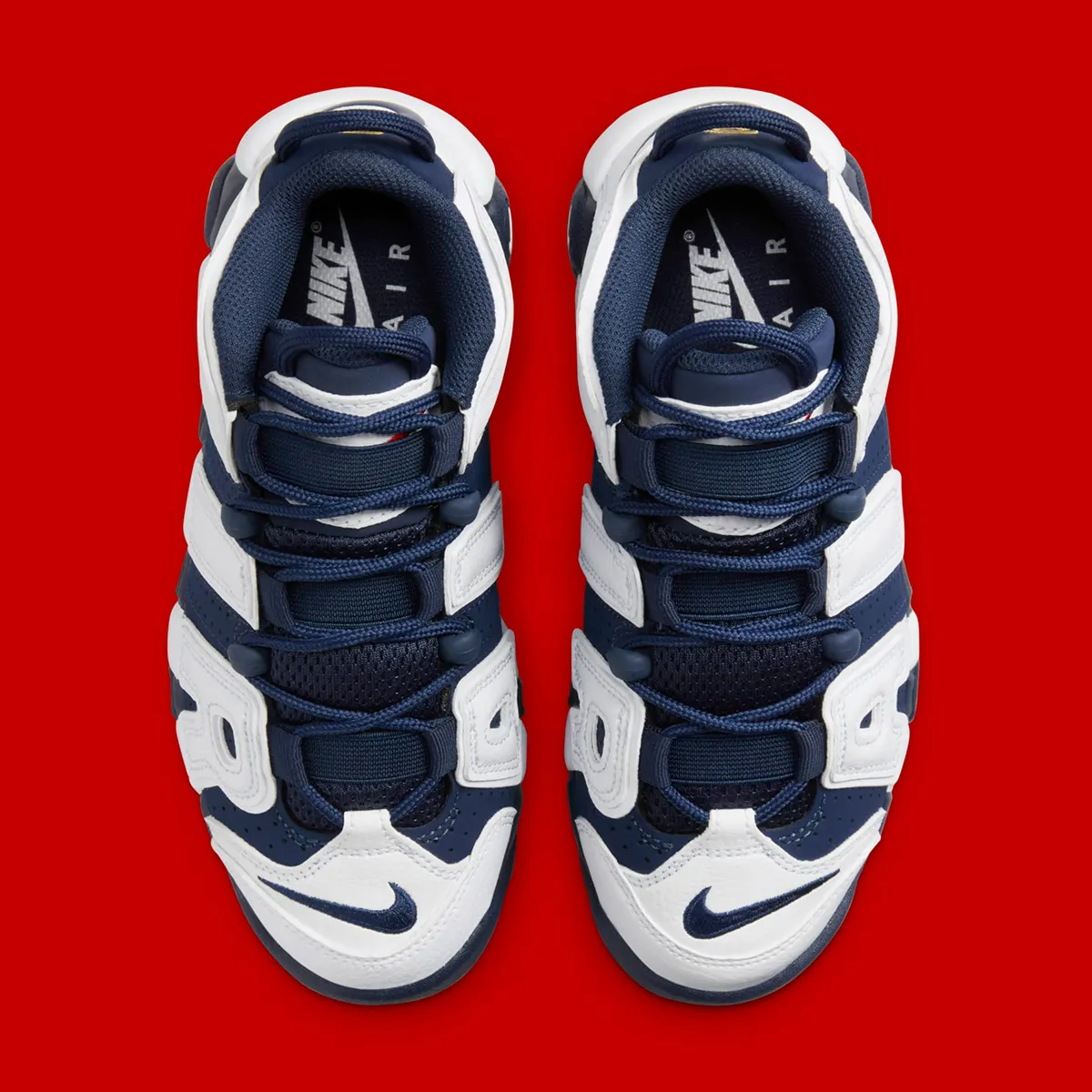 Nike a donc dévoilé les images officielles de son coloris « Olympic » 2024 en l’honneur de Team USA. La tige en bleu marine est recouverte du lettrage « AIR » en cuir blanc. La touche de rouge apparaît sur les trois logos « Swoosh » présents sur la languette et sous la semelle. Petit plus, le numéro 8 qui ressort en couleur or au niveau du talon, en clin d’oeil à Scottie Pippen, membre de la Dream Team de 92 et surtout formidable ambassadeur de ce modèle imposant à cette époque.