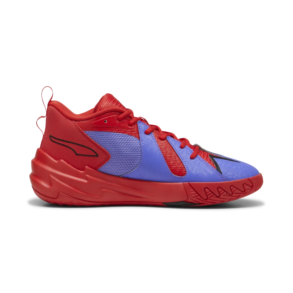 La tige de cette version « Pred » se décline entre deux notes de violet, une partie supérieure en rouge et des contours en noir. La semelle apparaît également en rouget, violet et noir, donnant à l’ensemble un petit côté « Raptor » à cette Scoot Zeros « Pred »(ator).