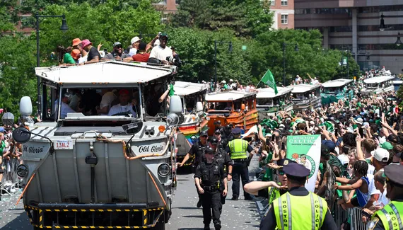 Et pour respecter la tradition des autres franchises locales – Patriots en NFL, Red Sox en MLB, et Bruins en NHL – quand elles célèbrent un titre de champion, cette parade dans les rues s'est effectuée dans un “duck boat”, ce véhicule amphibie de la Seconde Guerre mondiale.