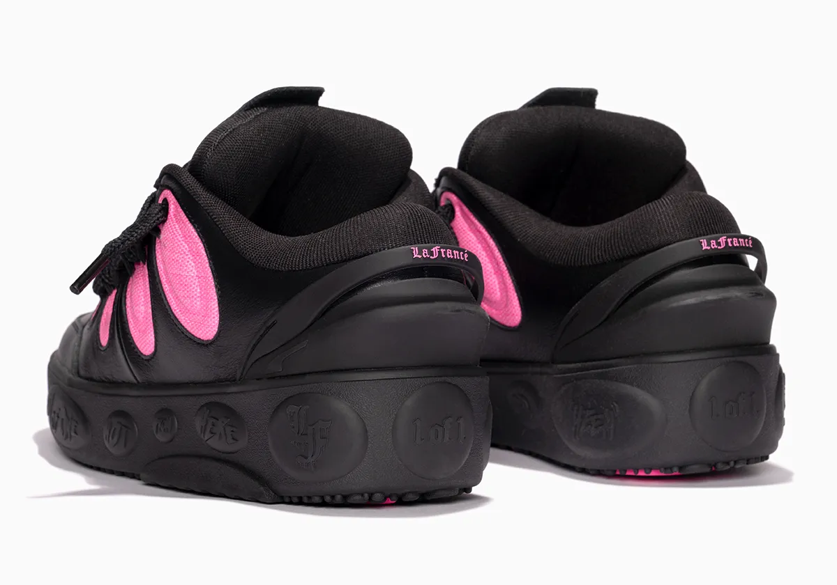 Le premier est principalement noir accompagné de finitions en rose, sur les œillets, sous la semelle et sur les inscriptions et logo comme le « LF » et le puma présent sur la languette. Le second arbore une tige blanc nacré “crème” avec des œillets en blanc et des finitions cette fois en marron.