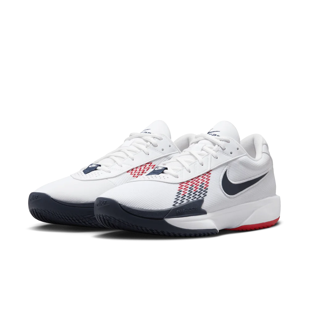 Les Jeux olympiques de Paris 2024 approchent à grand pas et Nike a fait le nécessaire pour être à la hauteur de l’événement en proposant quatre modèles estampillés “Team USA” : la Nike Ja 1 de Ja Morant et la KD 17 de Kevin Durant, déjà précédemment dévoilées. La Ja 1 de Ja Morant, qui regardera la compétition à la télé, bénéficie ici d’une tige en bleu marine entre mesh et cuir, contrastée par un « Swoosh » blanc. Les finitions en rouge et blanc sont présentes sur la semelle et également au niveau du col et de la languette.