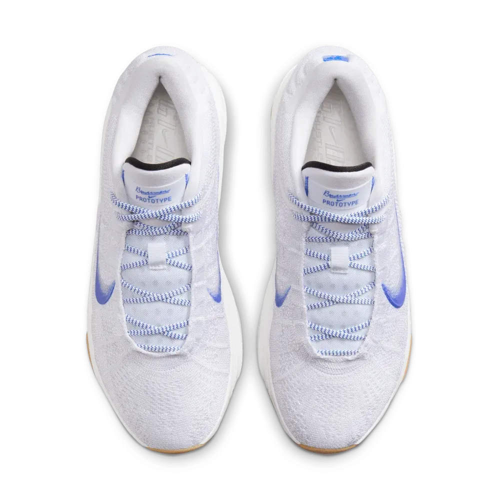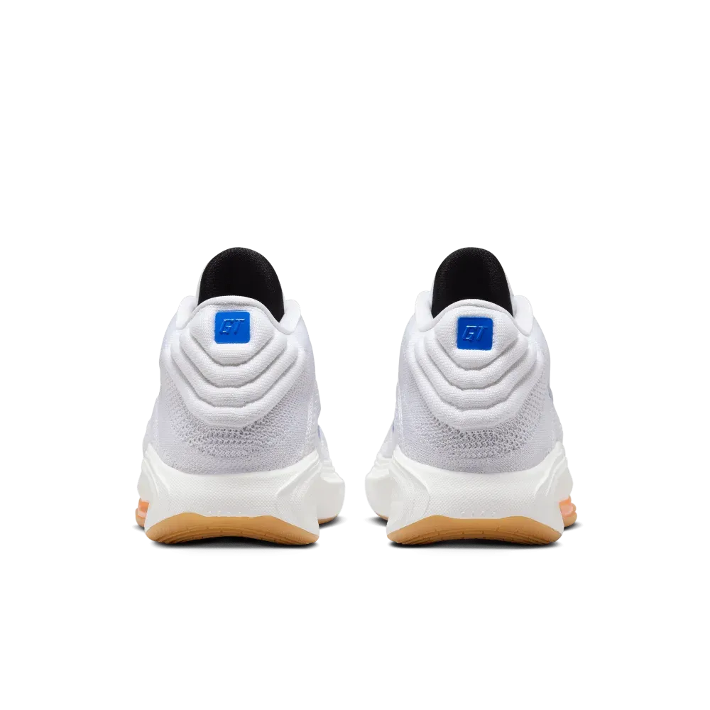 On retrouve ainsi une nouvelle unité Air Zoom à l’avant du pied pour agir à la fois sur le confort et le retour d’énergie vers l’avant, complétée par une couche Zoom Air Strobel sur toute la longueur. Côté design, Nike est revenu à du classique après avoir osé davantage sur la Nike GT Hustle 2. La tige en mesh, ici en blanc-gris, est assortie d’un « Swoosh » en tricot souple bleu, tandis que la semelle extérieure ressort en marron et blanc. .