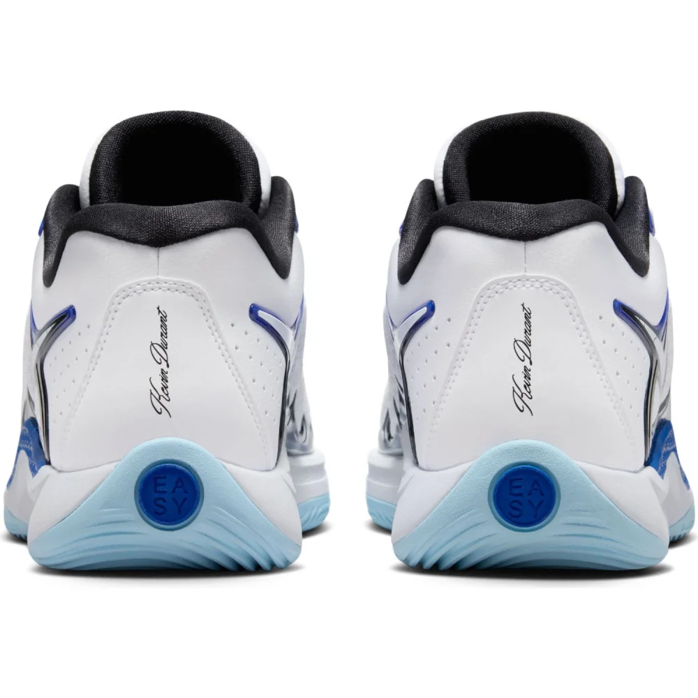 Pour le reste des finitions, le « Swoosh » est également en TPU, une pastille « EASY » figure à la base du talon sur la semelle extérieure en caoutchouc, juste en dessous de l’inscription « Kevin Durant » à la verticale. Selon les coloris, l’inscription « Easy Money » est également visible sur la semelle intermédiaire. Une bulle d’air sur laquelle figure le logo du joueur est aussi présente sur la languette.
