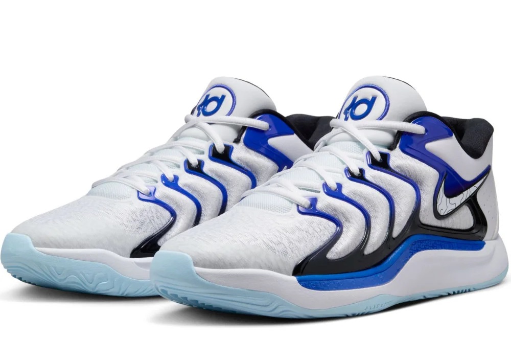 Pour innover, le modèle a donc revu le design de la tige, par rapport à la KD 16, avec des renforts latéraux en TPU ondulés remontant jusqu’aux œillets sur une base en mesh. Un motif qui fait penser à la Nike Air Max Plus, les fameuses « TN », mais aussi à la moins connue Nike Air Flight Determination, datant également de la fin des années 90. L’ensemble a également pour but d’apporter un plus au niveau du bon maintien jusqu’à l’avant du pied.