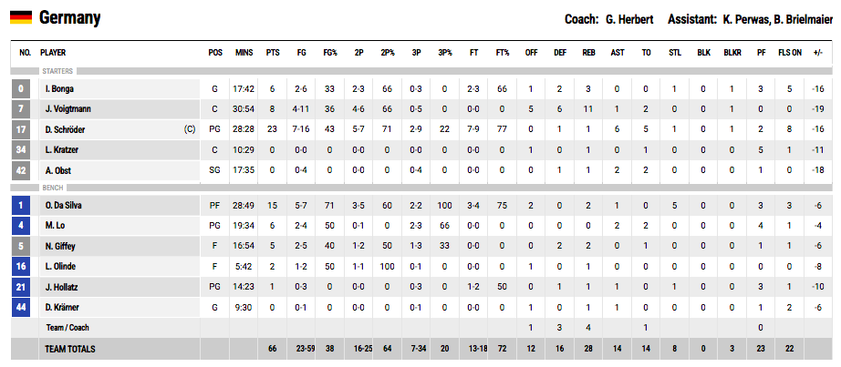 Les Bleus dominent, et les esprits s’échauffent soudainement, avec une embrouille entre Dennis Schröder et Evan Fournier, qui se conclut par l’expulsion de l’arrière français, coupable d’avoir pris au cou son adversaire, à 2 minutes de la mi-temps. Après un petit 1/4 aux lancers, les Bleus retrouvent leur ligne de conduite, à l’image de cette grosse séquence défensive de Mathias Lessort qui hérite du ballon en contre attaque pour un gros dunk. L’écart est important à la pause (48-28).