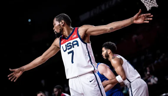 Kevin Durant est sur la touche depuis le début du “training camp” de Team USA. À cause d'une élongation au mollet, le joueur des Suns n'a pas pris part à l'entrainement collectif lors des deux premiers jours du regroupement en vue des Jeux olympiques.