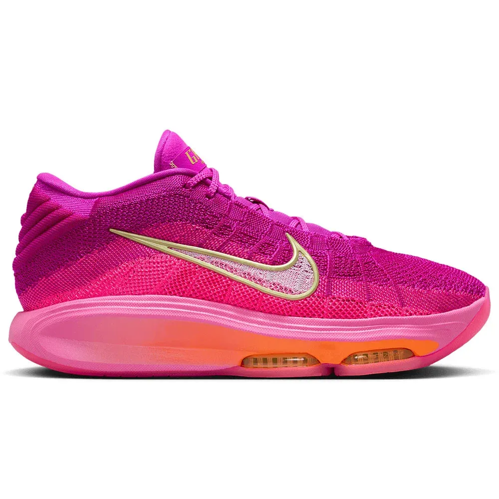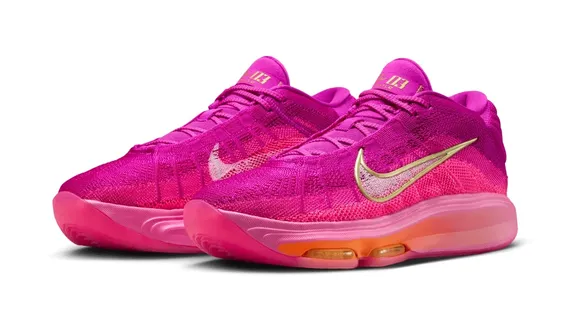 Côté design, Nike est revenu à du classique après avoir osé davantage sur la Nike GT Hustle 2. La tige en mesh, oscille ici entre rose et violet, avec un Swoosh blanc tandis que la semelle intermédiaire offre un dégradé allant du rose à l'orange.