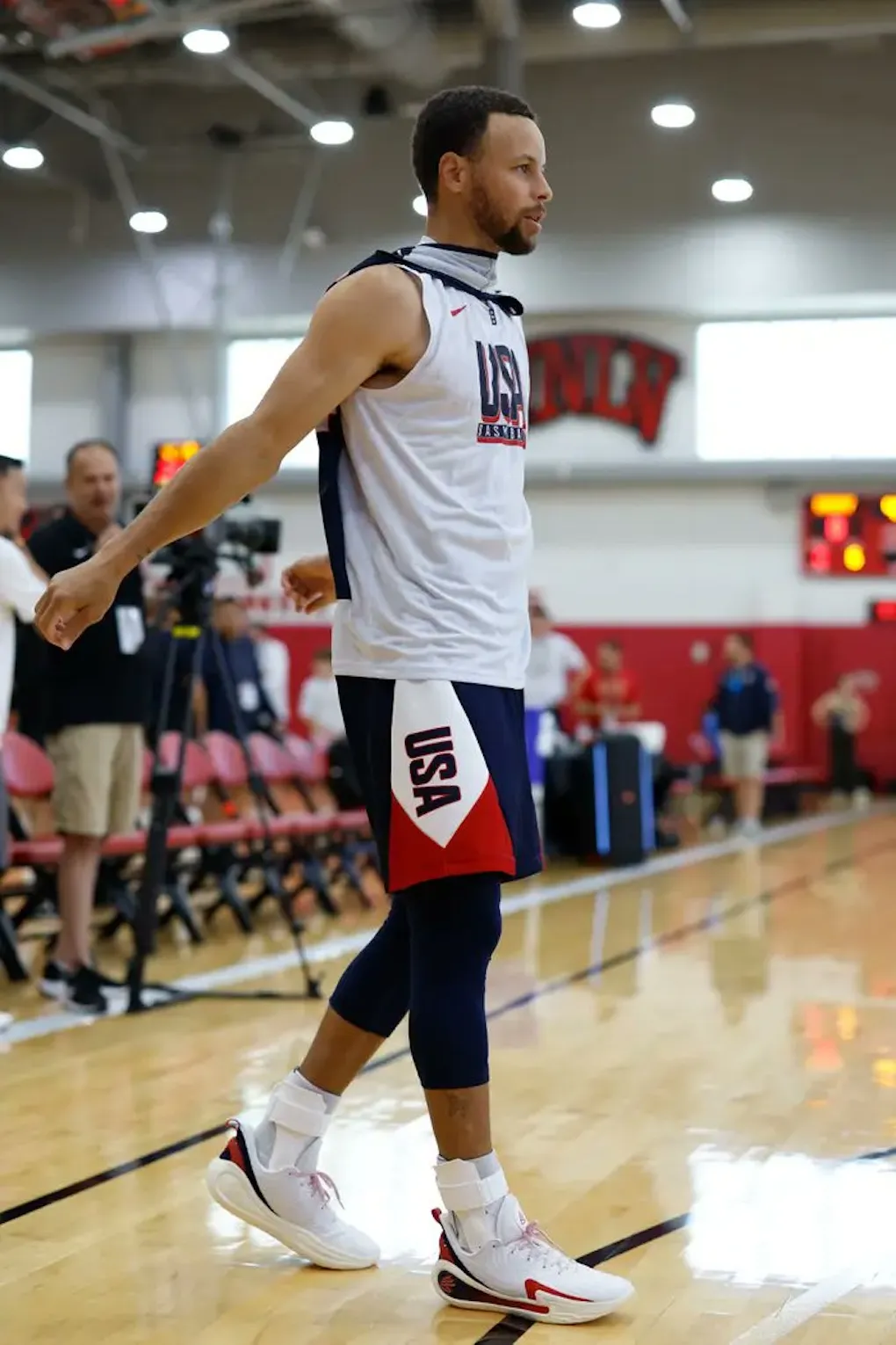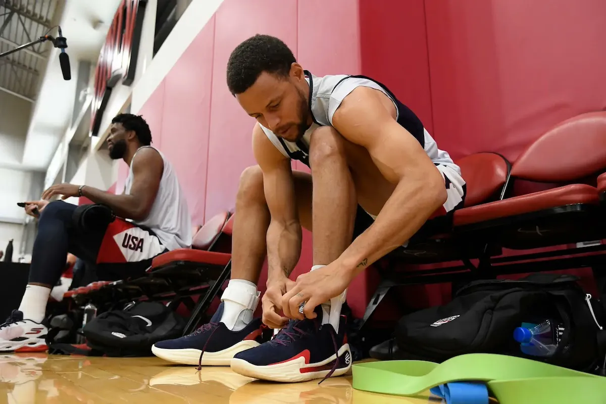 2024, année olympique ! En pleine préparation à Las Vegas pour les Jeux de Paris 2024, Stephen Curry en a profité pour dévoiler deux coloris de sa prochaine chaussure signature en collaboration avec Under Armour : la Curry 12 ! Le meneur des Warriors est resté dans le thème puisque les deux modèles qu’il a portés jusque là sont aux couleurs de Team USA.