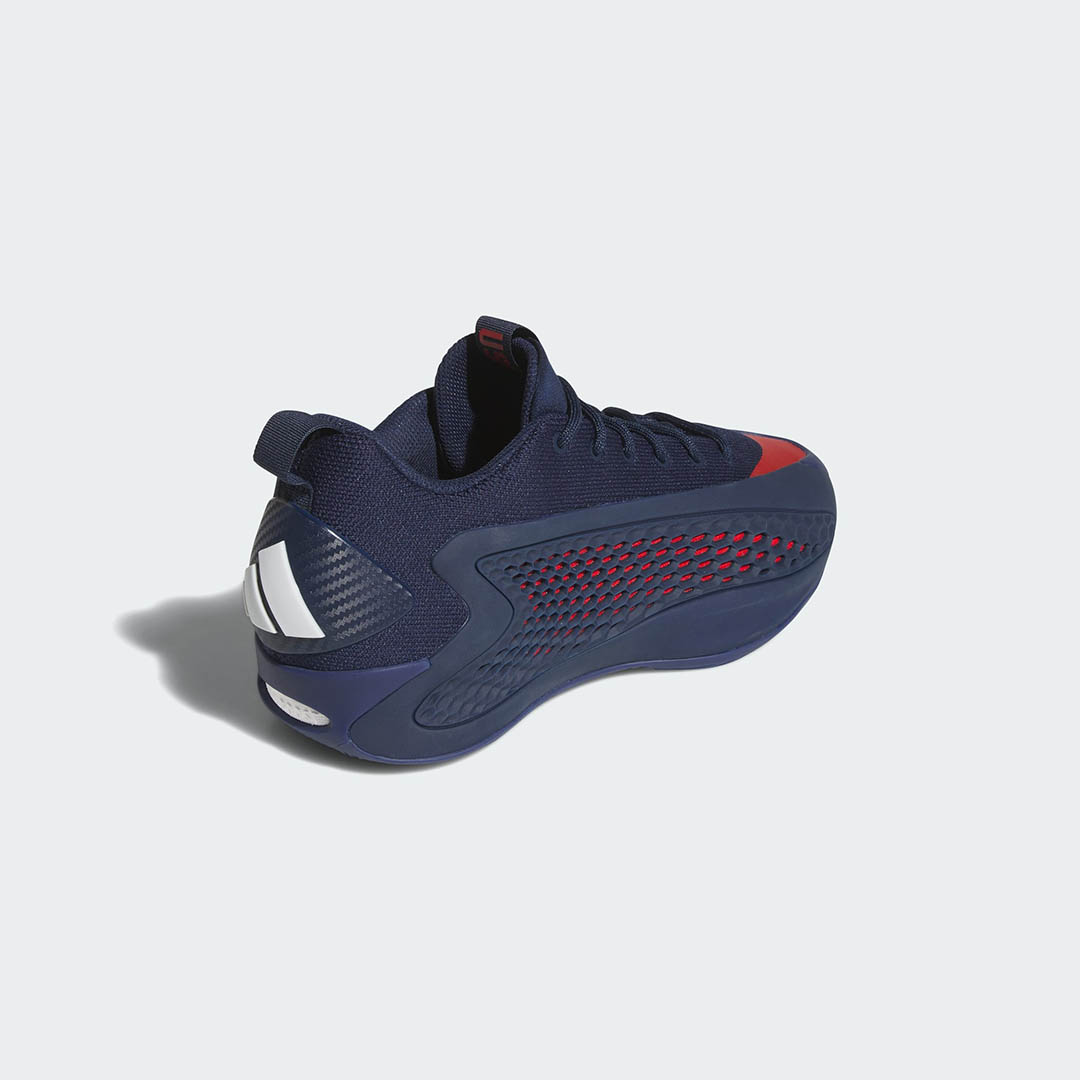À ses pieds, « Ant Man » a porté, comme bon nombre de ses coéquipiers, un modèle spécialement “dans le thème” pour l’occasion. Anthony Edwards a même vu large puisqu’adidas va carrément sortir un “Pack USA” avec trois coloris différents de la AE 1 Low. La chaussure qu’il portait hier dispose d’une base blanche et d’une partie supérieure en bleu marine, l’ensemble étant assorti de discrètes finitions en rouge.