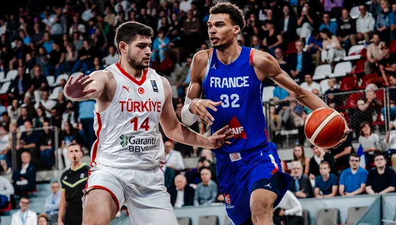 Derrière l’arc, avec Ruddy Nelhomme qui suait à grosses gouttes pour aller chercher ses rebonds et ne surtout pas casser son rythme, le jeune intérieur tricolore des Spurs a enchaîné les filoches (surtout du côté droit du parquet) avant de venir assurer le service après-vente à nos micros. Après avoir manqué le «match retour» face à l’Allemagne, «Wemby» a hâte de se frotter à Nikola Jokic…