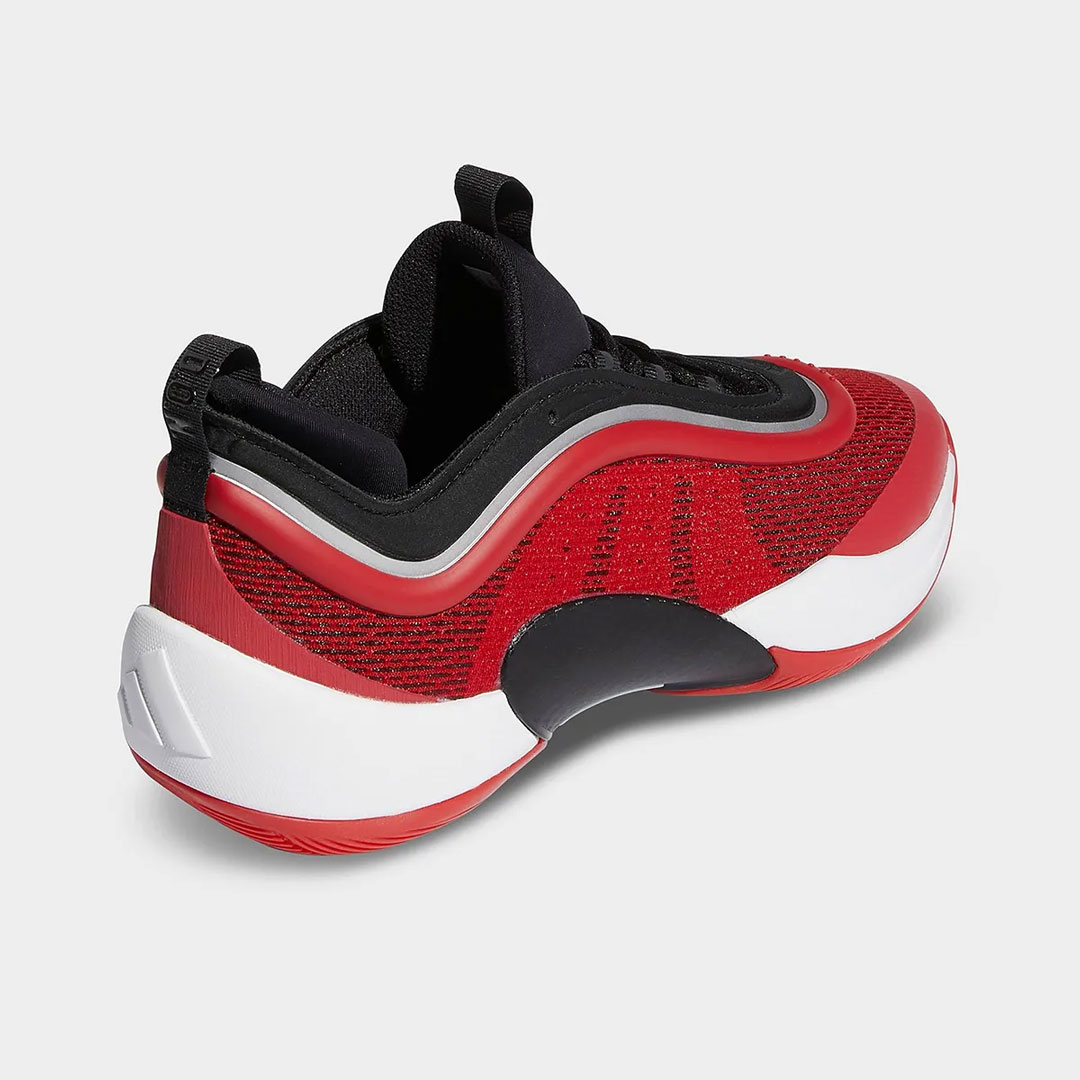 Pour la sixième chaussure signature de Donovan Mitchell, adidas a opté pour un nouveau design, avec une tige en mesh superposée de renforts sur la partie supérieure, et une semelle imposante dotée d’un amorti Lightstrike au niveau de la semelle intermédiaire. La partie supérieure ressort en noir et gris pour accompagner une tige principalement rouge. La semelle intermédiaire blanche est quant à elle assortie d’une semelle extérieure rouge en caoutchouc et d’une touche de noir sous le milieu du pied.