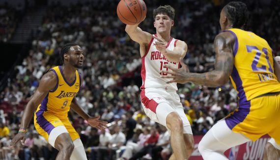A ses côtés, Cam Whitmore n’a clairement rien à faire en summer league. MVP l’an passé de la compétition, l’arrière-ailier des Rockets compile 20 points, 10 rebonds, 4 passes et 4 interceptions. Bien trop puissant pour ses adversaires, Whitmore pourrait rafler un 2e trophée de MVP si les Rockets le font jouer jusqu’au bout de la summer league.