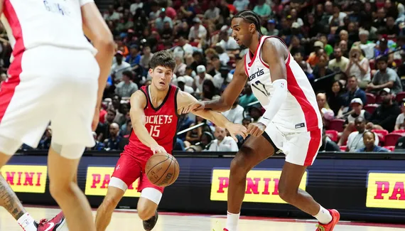 Confirmation que les Rockets seront difficiles à battre dans cette Summer League avec leur tandem Whitemore-Sheppard. Déjà en vue face aux Lakers, Cam Whitmore et Reed Sheppard en remettent une couche avec respectivement 25 et 22 points dans la large victoire face aux Wizards (109-91). Déjà menés de 15 points à la pause, les coéquipiers d'Alexandre Sarr ont énormément souffert sous les panneaux avec 30 rebonds, contre 48 pour les Rockets.