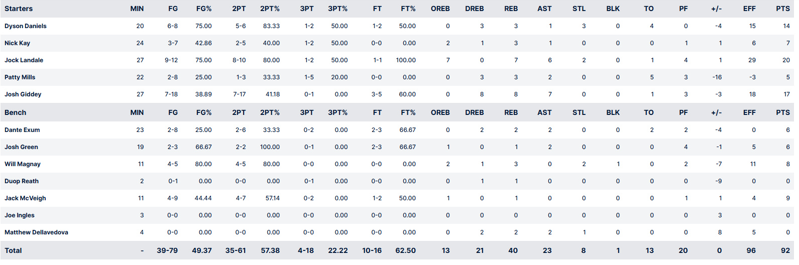 À Abou Dabi, les Etats-Unis s’imposent 98 – 92 face à l’Australie de Jock Landale (20 points, 7 rebonds, 6 passes). A l’image d’Anthony Edwards (14 points), les joueurs de Team USA ont alterné le très bon et les très mauvais, mais l’abattage d’Anthony Davis (17 points, 14 rebonds) et la maladresse extérieure des Boomers (4 sur 17 à 3-points) leur ont permis d’éviter un gênant hold-up.