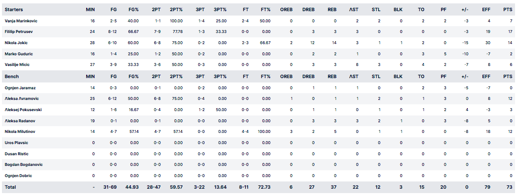 Le feu follet portait ainsi l’attaque de son équipe, alors que Filip Petrusev faisait une nouvelle fois très bonne impression, bien aidé par Nikola Milutinov, qui faisait également très mal à la raquette adverse. Une nouvelle contre-attaque d’Aleksa Avramovic plaçait même la Serbie en tête (40-39) à la mi-temps.