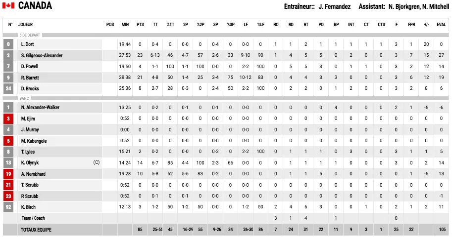 Toujours aussi mal à l'aise dans leurs mises en place offensives, et coupables de 20 balles perdues, les Bleus s'inclinent logiquement face au Canada (85-73). Shai Gilgeous-Alexander (23 points, 5 rebonds, 5 passes) et RJ Barrett (21 points) ont été les deux fers de lance de la victoire canadienne face à des Bleus dont les limites offensives semblent difficiles à rattraper à ce stade de la préparation…