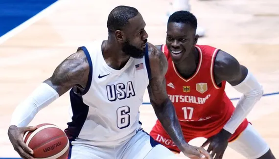 Joel Embiid et LeBron James réussissent deux 3-points qui font du bien aux Etats-Unis, mais Andreas Obst aussi, avec la faute en prime, et l'Allemagne passe carrément devant.
