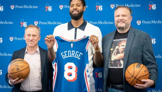 Après l’échec au premier tour des playoffs du “Big Three” qu’il composait avec Kawhi Leonard et James Harden, Paul George rejoint Joel Embiid et Tyrese Maxey, afin de décrocher ensemble un premier titre en NBA.