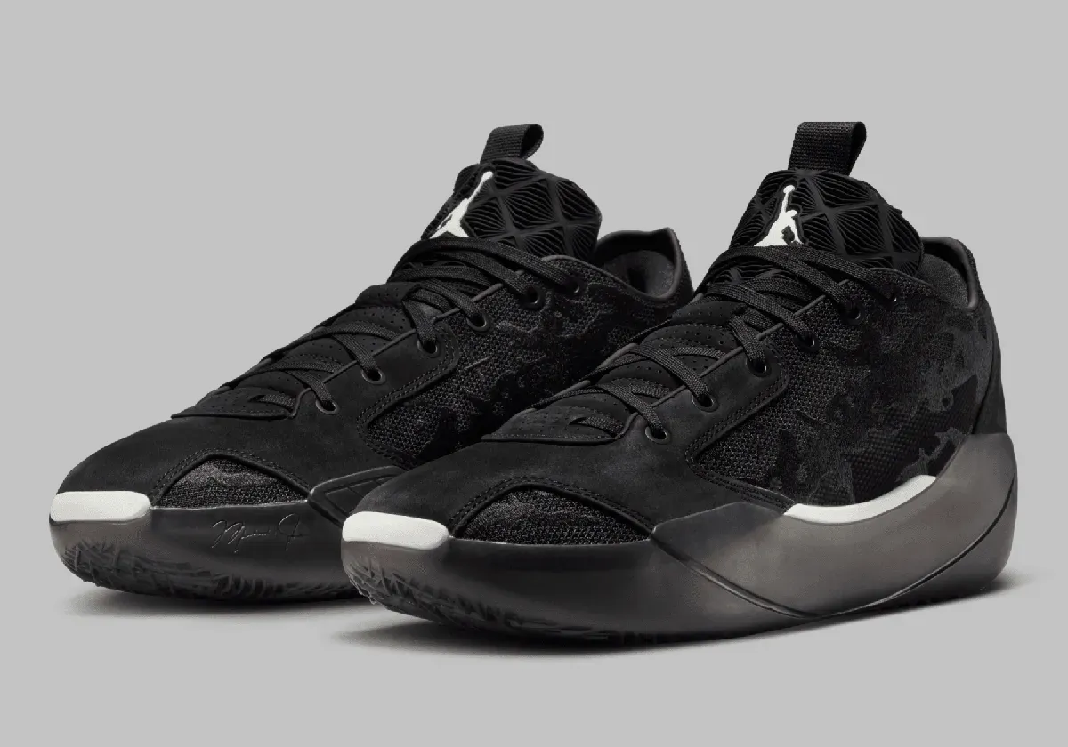 Baptisé « Lumière », celui-ci est composé d'une tige entre mesh et daim noir. Seul le logo « Jumpman » sur la languette et la semelle extérieure ressortent en blanc, sur une semelle extérieure noire translucide.