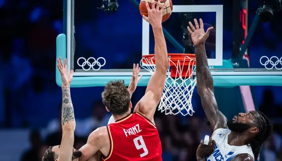 Le stade Pierre-Mauroy de Villeneuve d'Ascq est en ébullition alors que Léon Marchand décroche son quatrième titre de champion olympique. Sur cette lancée, le public reste bouillant pour la présentation des Bleus mais Dennis Schröder et Franz Wagner se chargent rapidement de les calmer, l'ailier dunkant malgré le retour de Victor Wembanyama !