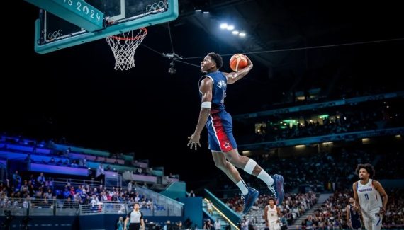 “J’attendais ça depuis longtemps. Je veux dunker sur la tête de quelqu’un mais je n’ai pas encore eu l’opportunité. Je suis content d’avoir réussi ce dunk. J’espère attraper quelqu’un dans les trois prochaines rencontres.” Toujours aussi ambitieux, Anthony Edwards a réussi un des plus beaux dunks des Jeux olympiques face à Porto Rico, avec un aérien “windmill” en contre-attaque.