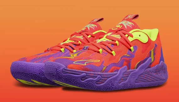 On est jamais déçu avec LaMelo Ball et Puma en matière de coloris excentriques. C’est ce qui a fait le succès de la série des trois premières chaussures signature du meneur des Hornets, et cette nouvelle MB.03 Low conserve également cet ADN, avec un coloris « Lava » détonant.