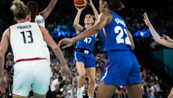 Ce n’est pas la ligne de stats la plus impressionnante de la soirée, avec 0 point, 3 passes et 4 fautes en 12 minutes face à l’Allemagne, mais Romane Bernies, propulsée titulaire, a donné le ton face à Alexis Peterson.