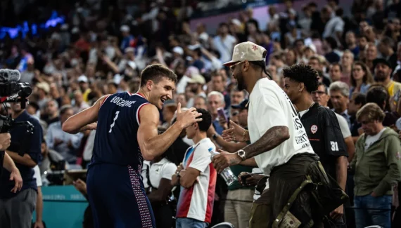 À l’issue de cette rencontre, il a eu l’occasion de croiser Carmelo Anthony, présent au premier rang avec son fils pour la plupart des matchs. Deux jours plus tôt, Bogdan Bogdanovic s’était fait remarquer en imitant la fameuse célébration de l’ancien joueur NBA – se taper la tête avec trois doigts – après un panier inscrit face à Team USA.