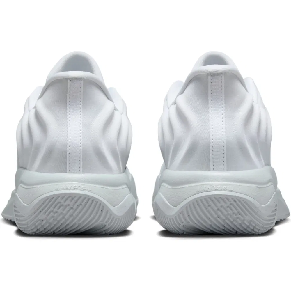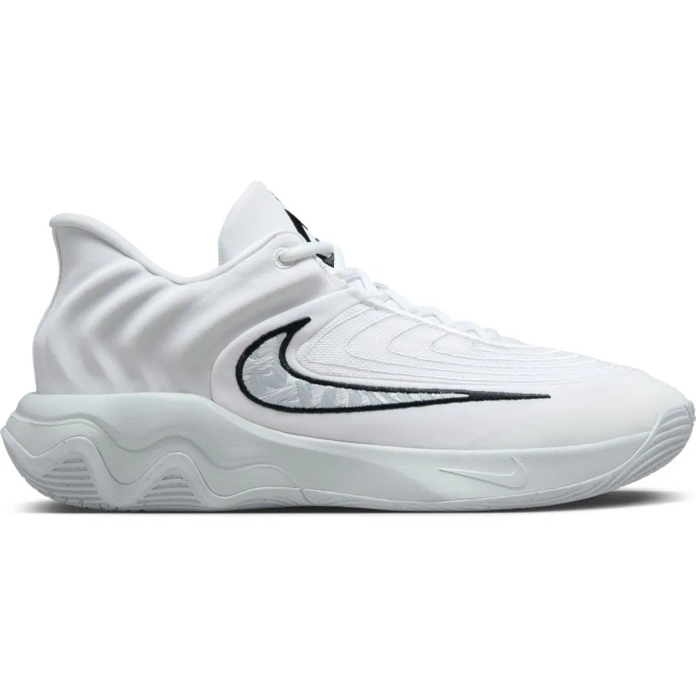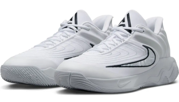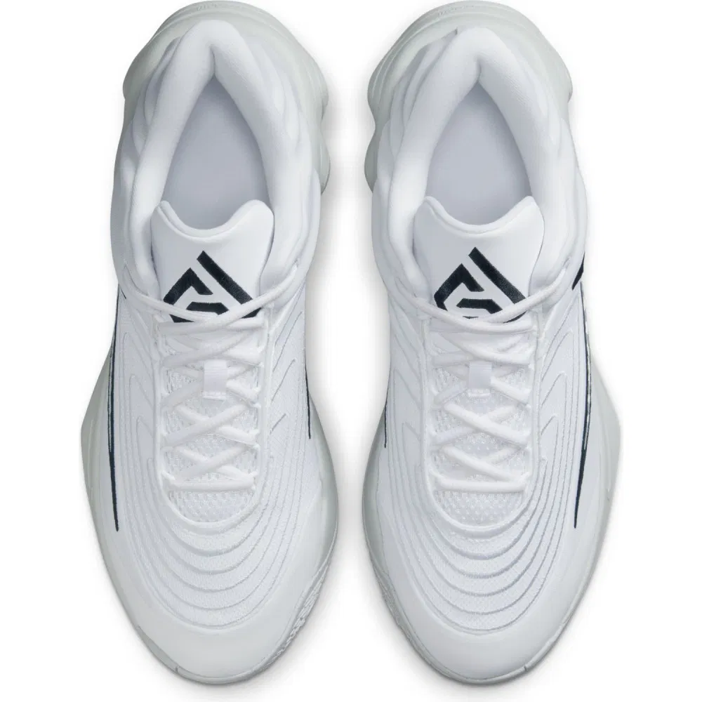 Niveau design, le « Swoosh » inversé est toujours présent sur l’empeigne, ici en noir sur un coloris principalement blanc, seul le logo de Giannis Antetokounmpo figurant également en noir, sur la languette.