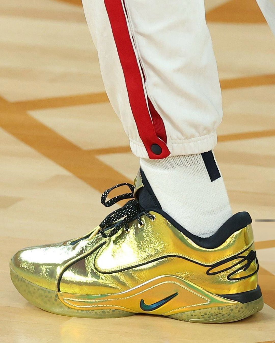 Dévoilée jusque là en deux coloris en référence à Team USA, en blanc, rouge et bleu, la LeBron 22 s’est cette fois parée d’un coloris doré de circonstance à l’occasion de la finale remportée face aux Bleus au terme d’un match exceptionnel d’intensité.