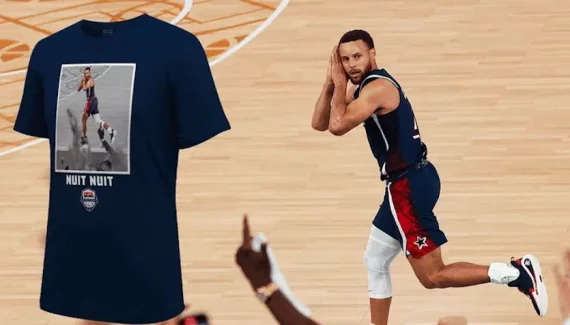 Mieux, quelques heures après avoir reçu sa médaille d’or olympique, Curry avait déjà sur le dos un sweat avec inscrit “Nuit Nuit“. Initialement, cette série de vêtements ne devait pas être vendue mais… on apprend que Curry a décidé de déposer la marque “Nuit Nuit”, et on trouve déjà un modèle chez Fanatics avec l’expression “Nuit Nuit”. En 2022, le meneur des Warriors avait déjà déposé la marque “Night Night”, et il a déposé la marque “Nuit Nuit” le 14 août en Europe, et le 19 août aux Etats-Unis.