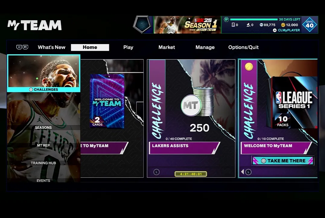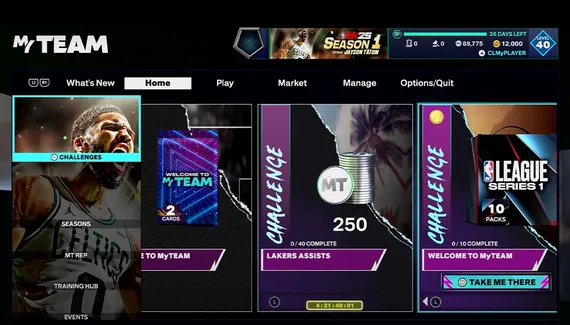 Les “challenges”, les sessions “freestyle”, “scrimmage” et “practice plays” sont toujours présentes sur le menu MyTeam, aux côtés de tout les tutoriels.
