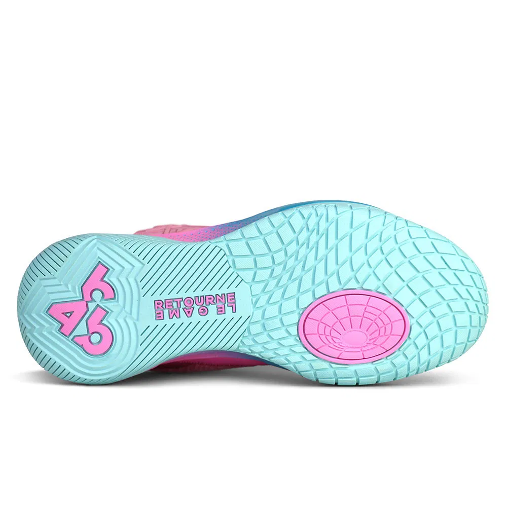 Au niveau de sa composition, l’empeigne en mesh assortie du logo « B4B » de la marque est complétée par des renforts latéraux agissant sur la stabilité et le maintien, et une languette bien rembourrée. La semelle intermédiaire en EVA est associée à un revêtement extérieur en caoutchouc à chevrons multidirectionnels. Le slogan « Retourne le Game » est présent à la verticale au niveau du talon et sous le milieu de la semelle, avec un autre logo « B4B » sous le talon.